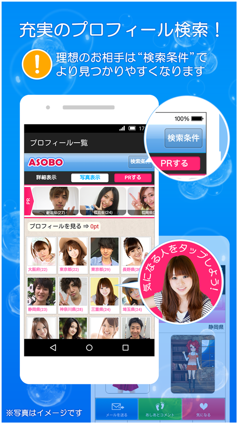 出会い系サイトの中では、最も早く、スマートフォン対応(iOS、Android)の出会いアプリをリリースしています。