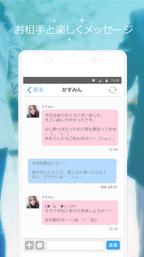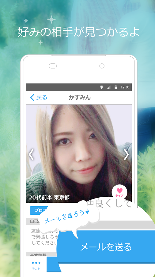 アプリ版は相手とのメールがチャット形式になっており、流行りのスタンプなども豊富で恋人・友達・婚活・恋活・恋愛など様々な目的に合ったパートナーとの出会いの場を提供してます。