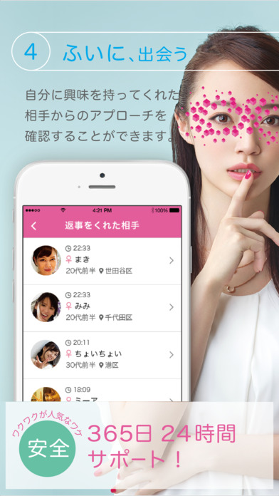 出会い業界の中でもかなり厳しい監視体制で怪しいユーザーは即削除対応!←対応が早いという安心感!
